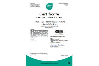 臺華新材 2023年原生產(chǎn)品Oeko-Tex Standard 100證書